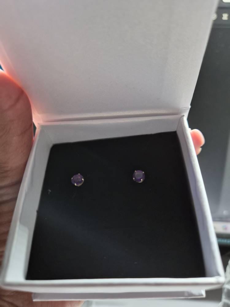 *Amethyst 14K Real Yellow Gold Light Weight Gold Screw or Push Backing sold in 1 Pair Round Solitaire Amethyst February Birthstone Earrings stud.