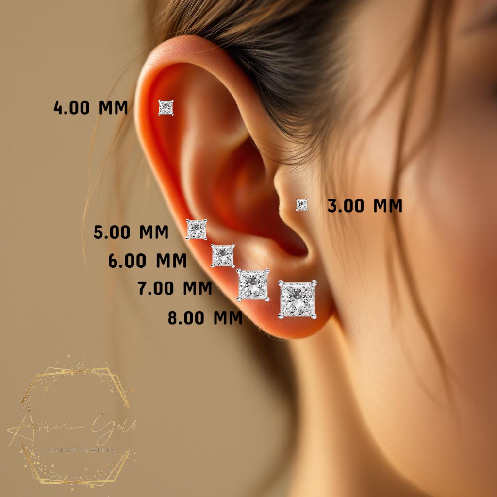 💎Super Bright 14K Solid Yellow Gold Princess Square Cut Birthstone Colors Earring with 4 Prong Setting 22 Gauge