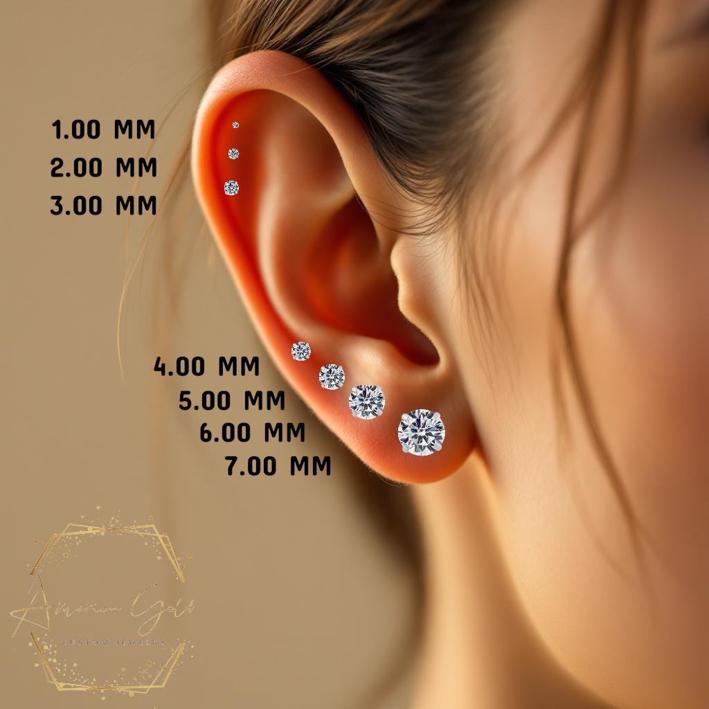 *Dainty LAB Grown Diamond 14K Real Yellow Gold Light Weight Gold sold in 1 Pair Round Solitaire Lab Grown Diamond Earrings stud.