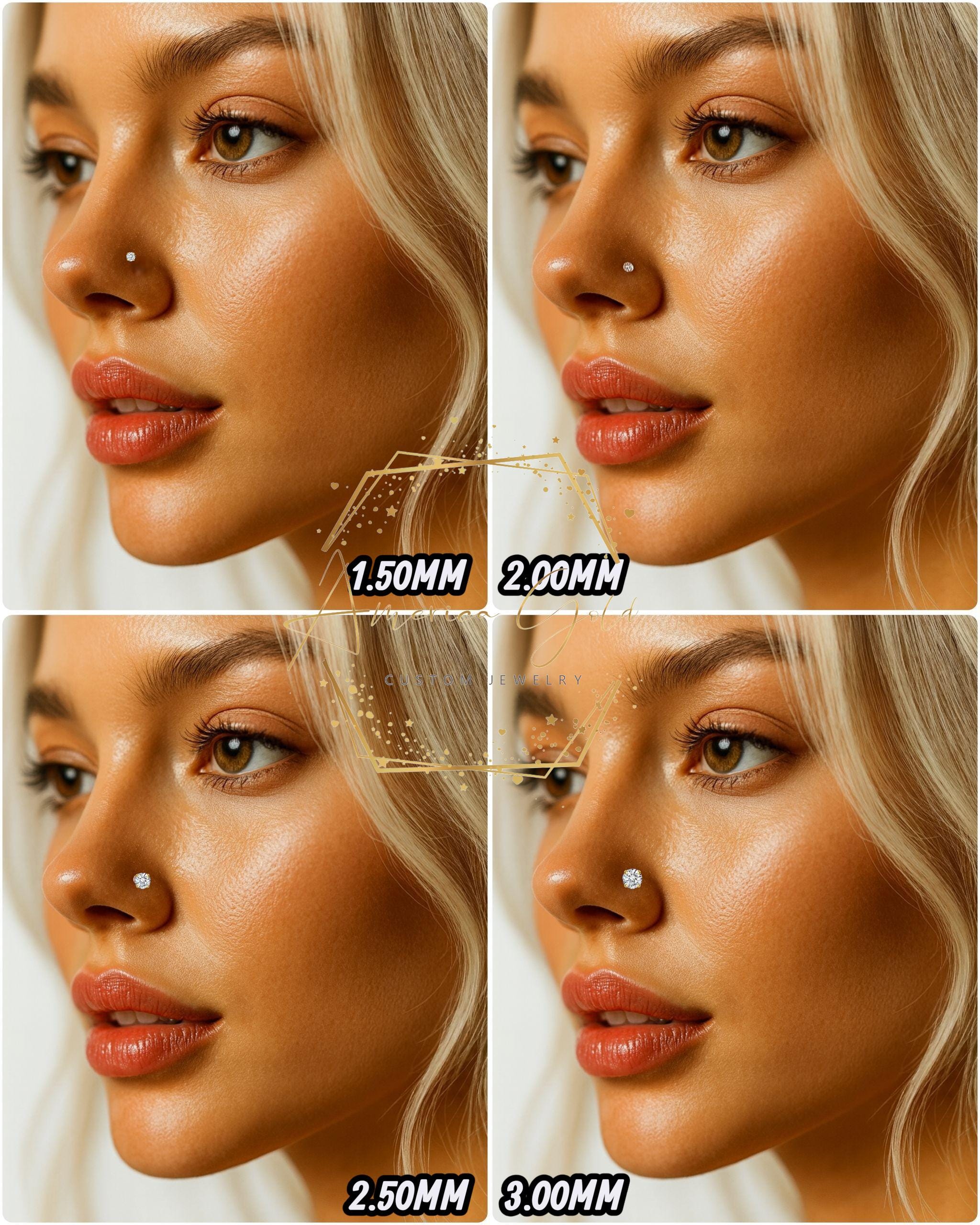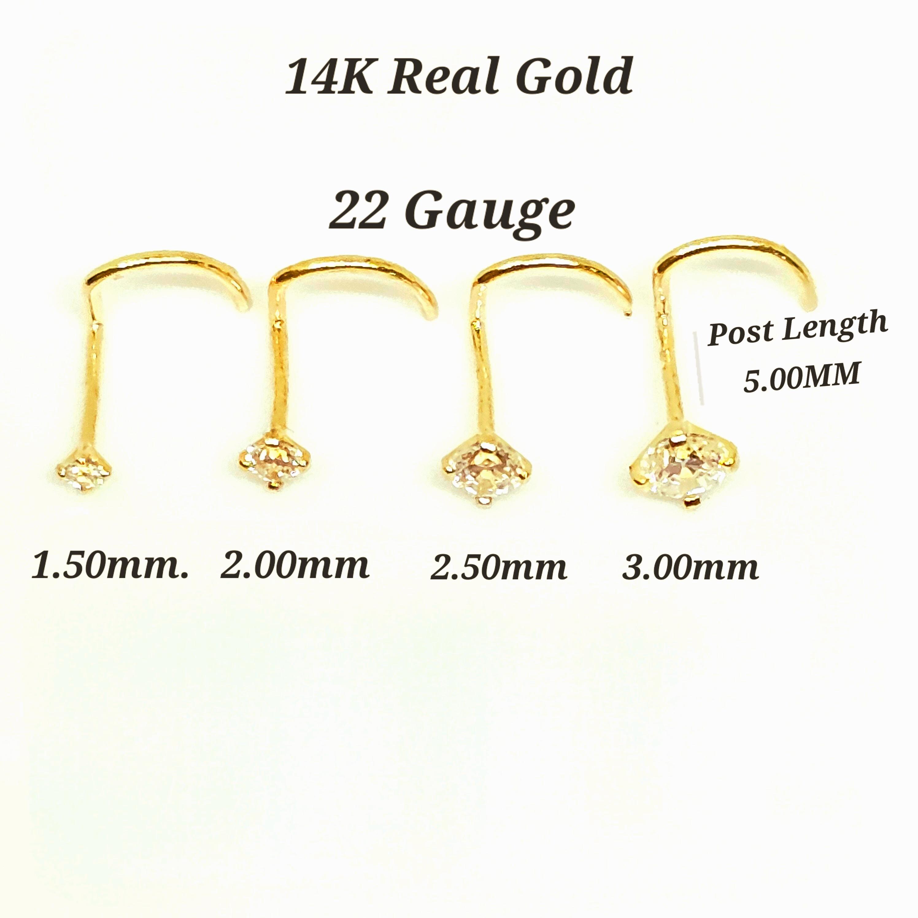 *Short Lenght 22 gauge 14K Solid Gold , Curve Bar Nose Stud, Diamond Nose Stud, Stem Very Short 5MM.