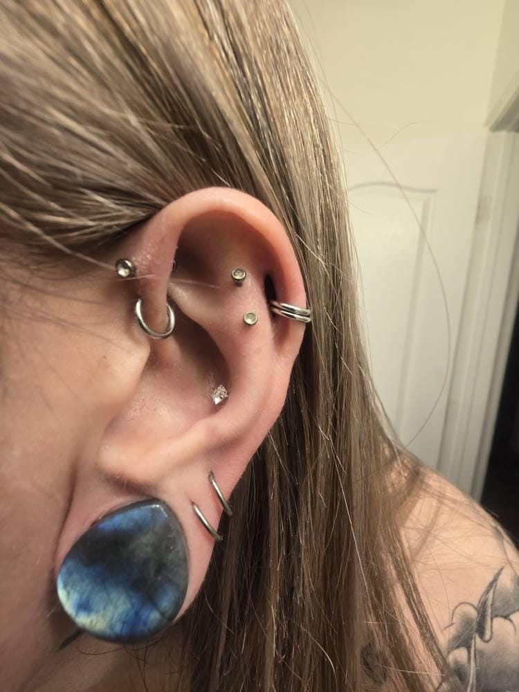 ❤️14K Gold Threadless Push-in Flat Back Stud With Prong Set Sold 1 piece 18GA , Lip, Cartiladge, Nose Stud, Tragus.