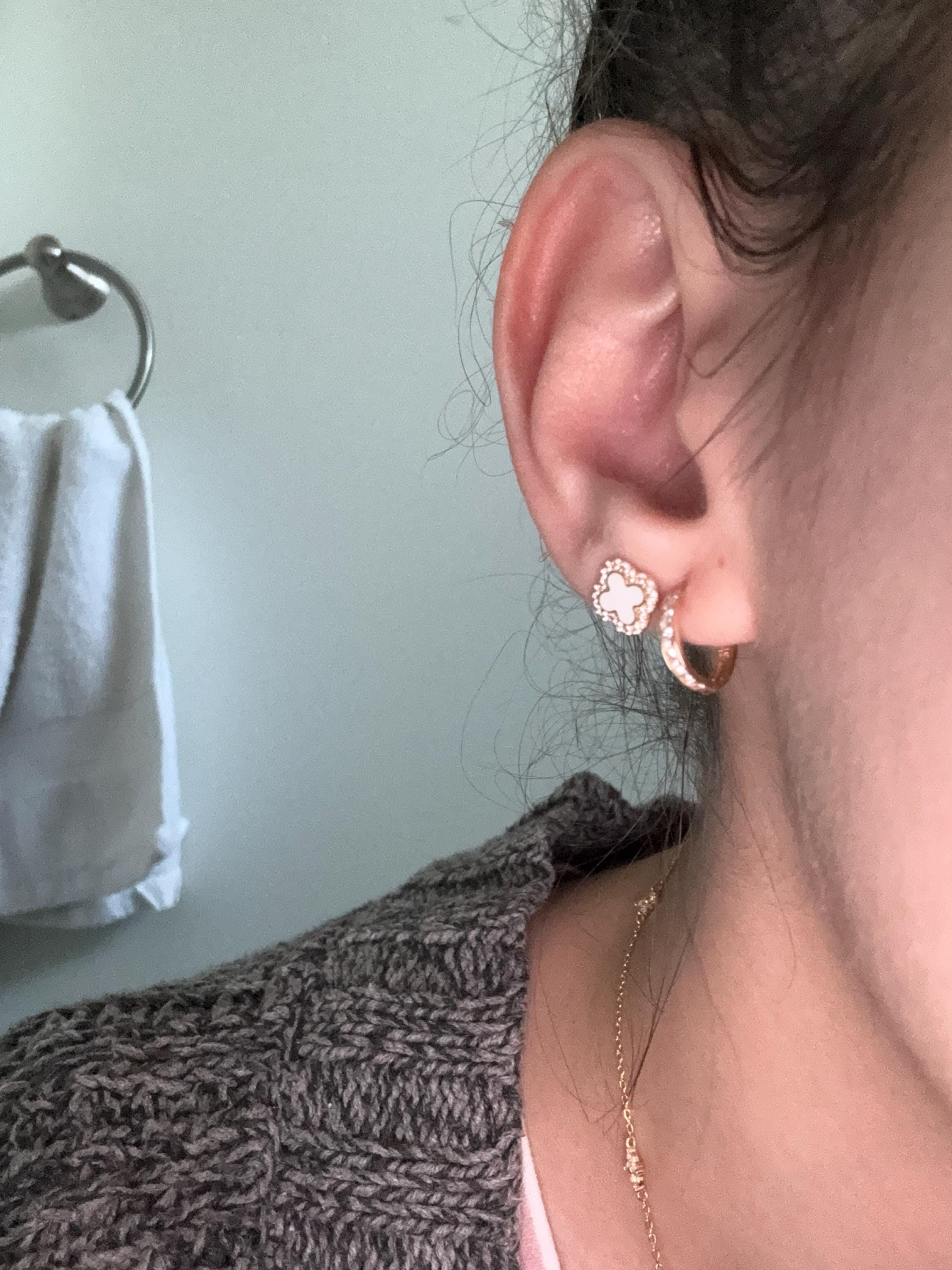 The earrings looked beautiful right out of the package and had a great first impression. However, when I went to put them on, I noticed they bend very easily. Because of this, they don’t clasp securely, which could cause them to fall out. While they’re definitely pretty, the quality isn’t the best, so I’d recommend purchasing with caution.