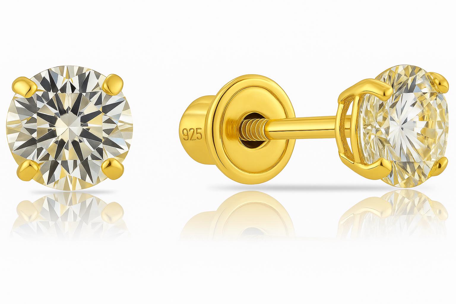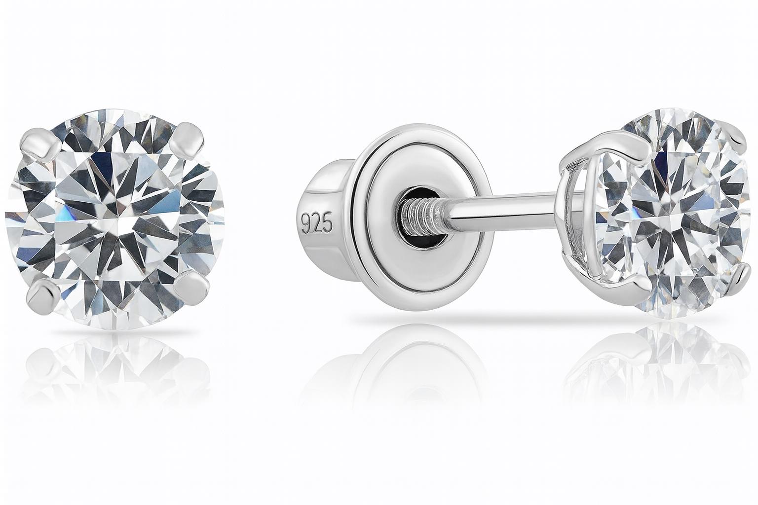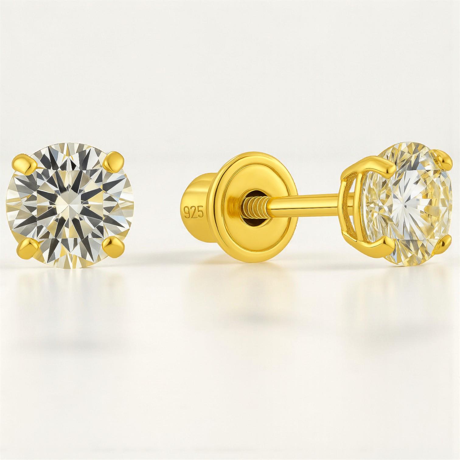 💎Moissanite Sterling Silver Round with BabyeScrew Backing Thin 22 GA post 2mm 3mm 4mm 5mm 6mm Men's Women's Stud Earring 1 pair.
