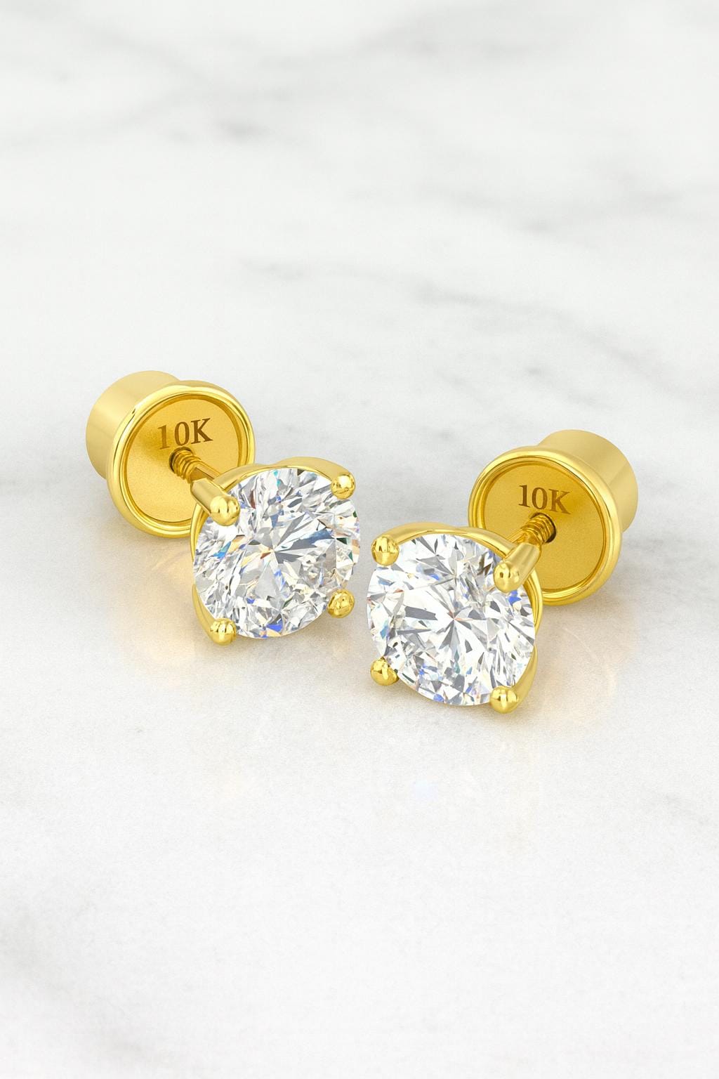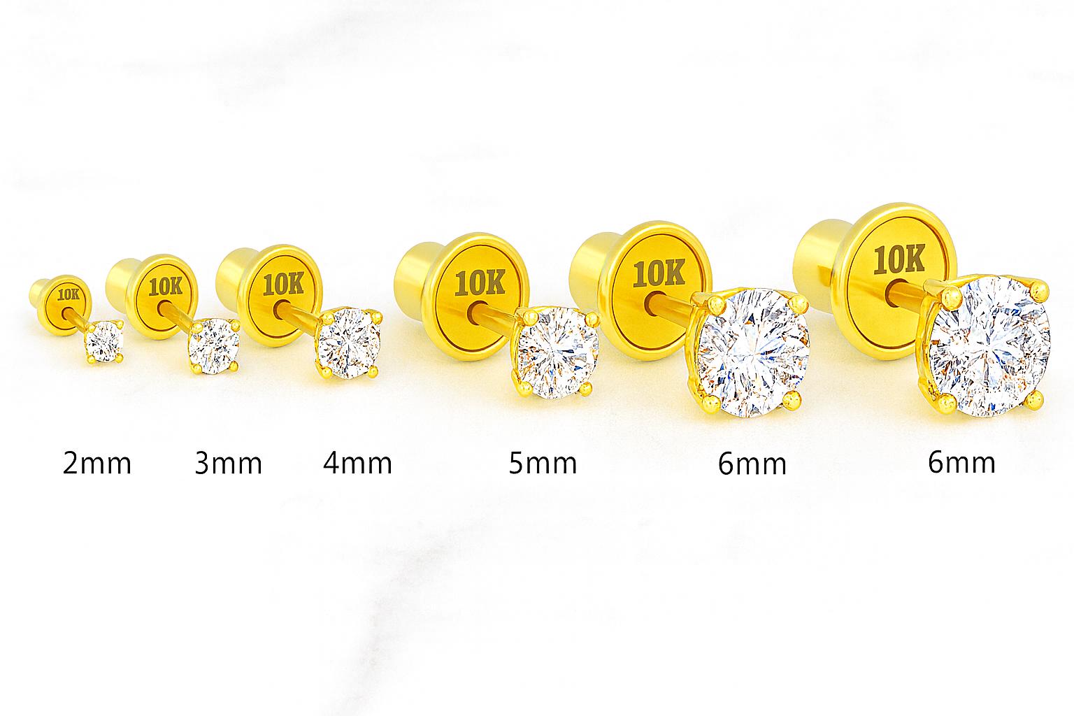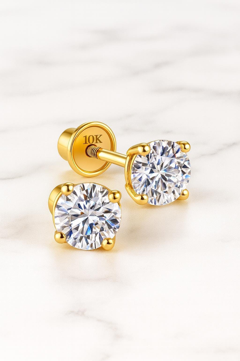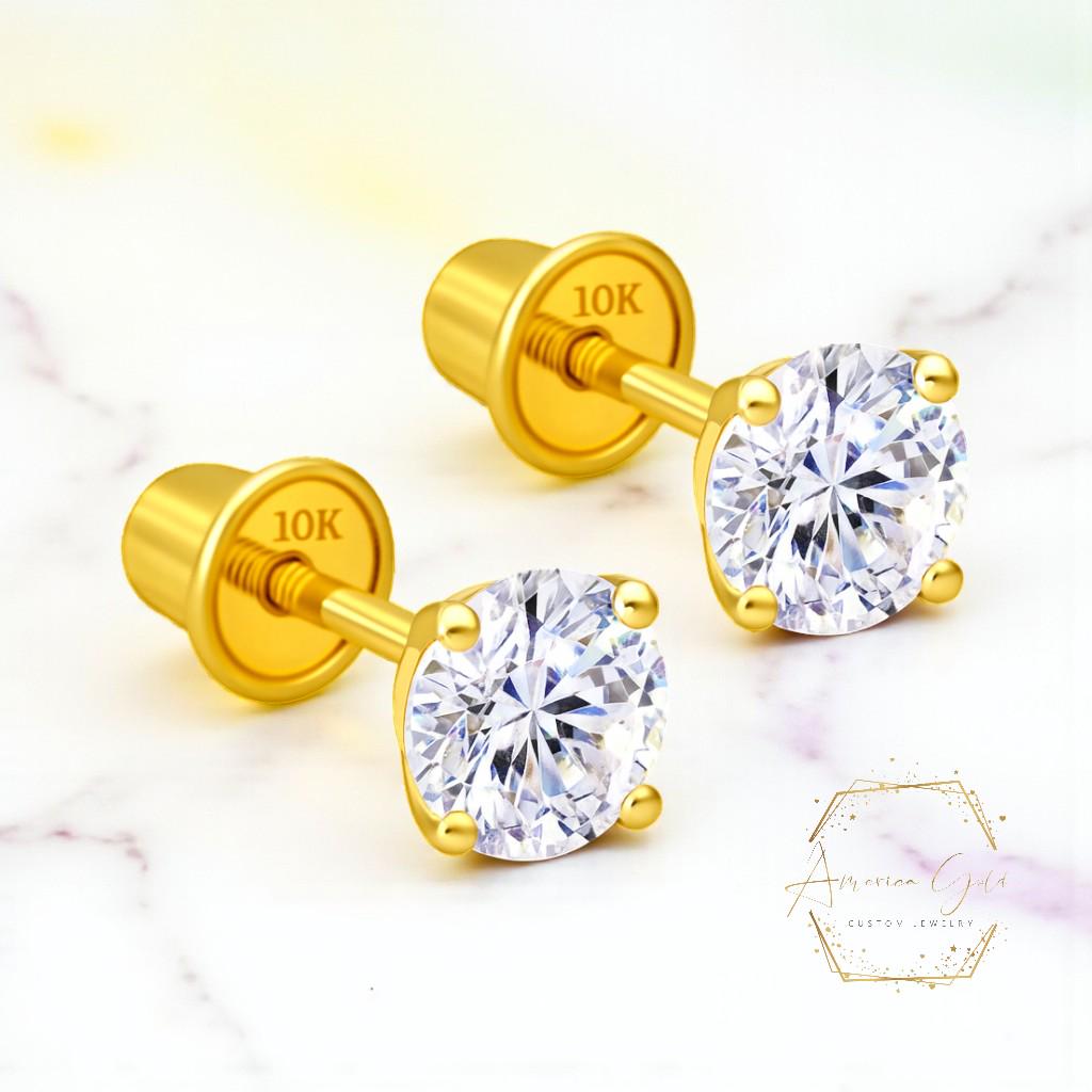 💎10K Yellow Gold Thin Post 22 GA Solitaire Round Cut Earring with 4 Prong Setting 3mm 4mm 5mm 6mm 7mm 8mm Option of CZ or Moissanite.