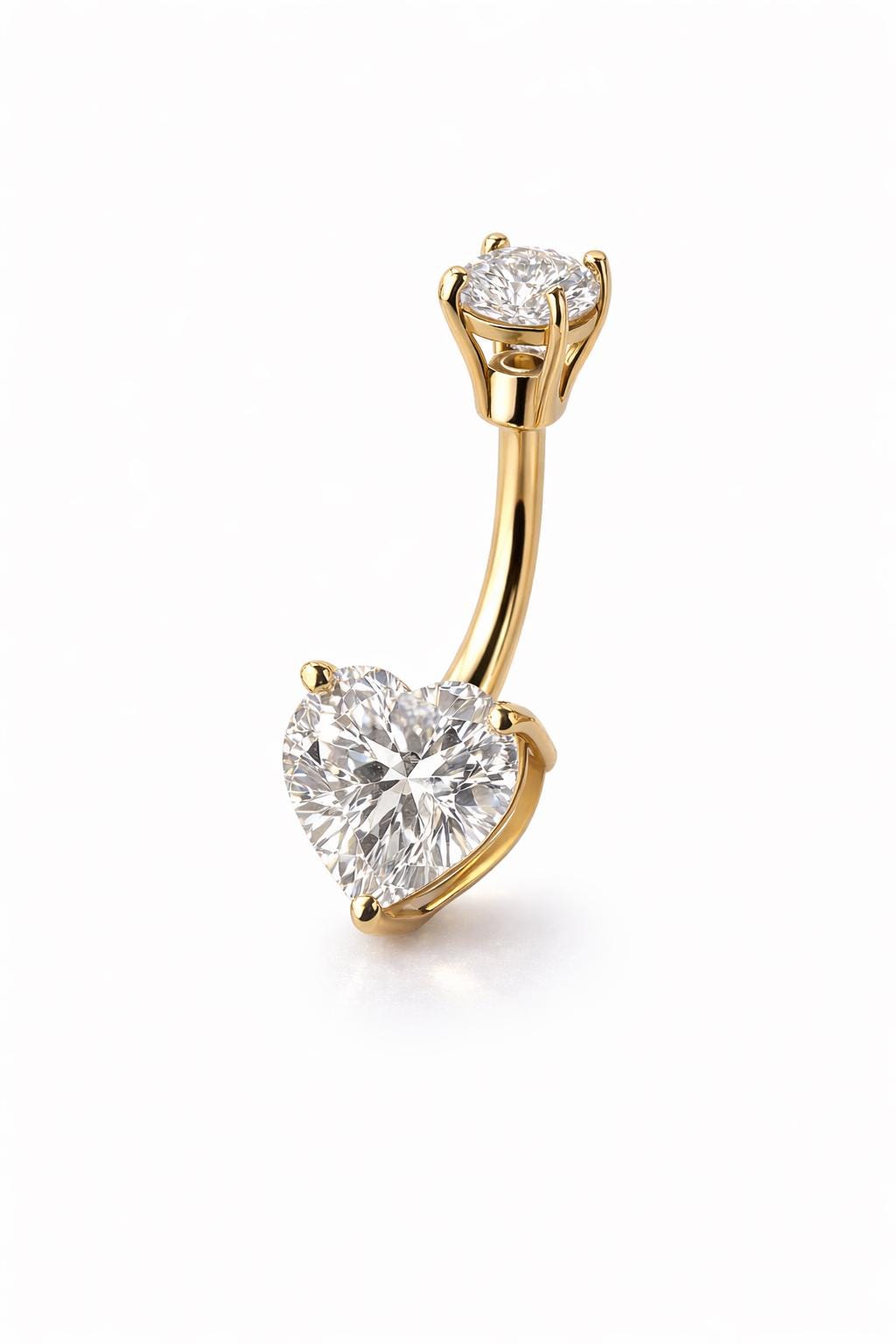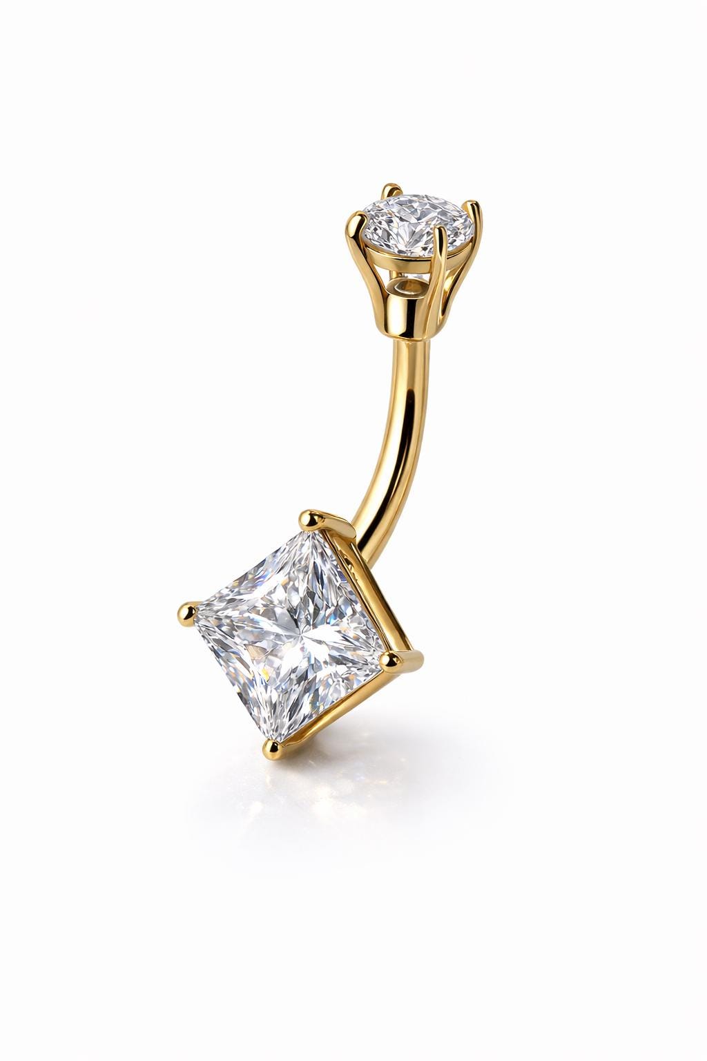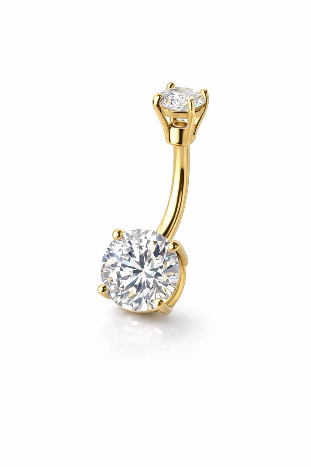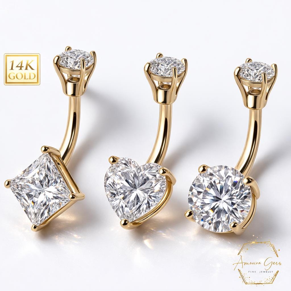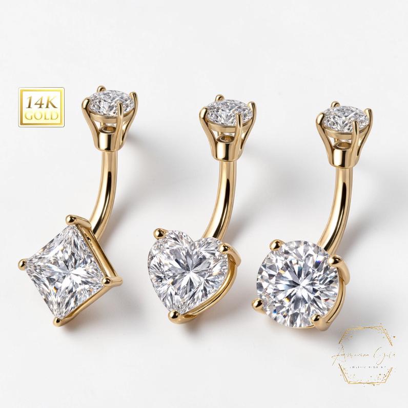 *14K Gold Shape CZ Prong Set Navel Belly Button Ring 14 Gauge post length 3/8" 10.00MM