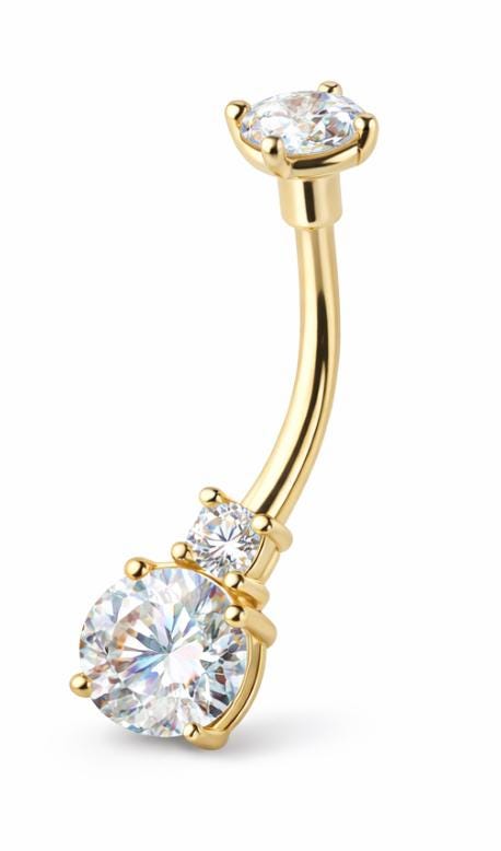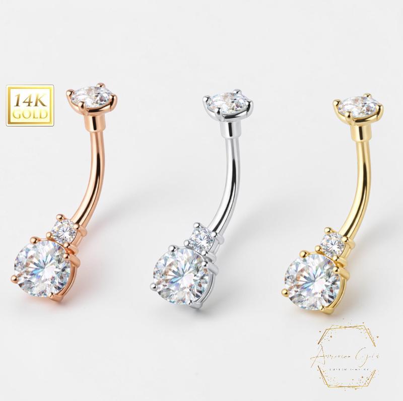 *14K Gold Double Gemstone Shape CZ Prong Set Navel Belly Button Ring 14 Gauge post length 3/8" 10.00MM