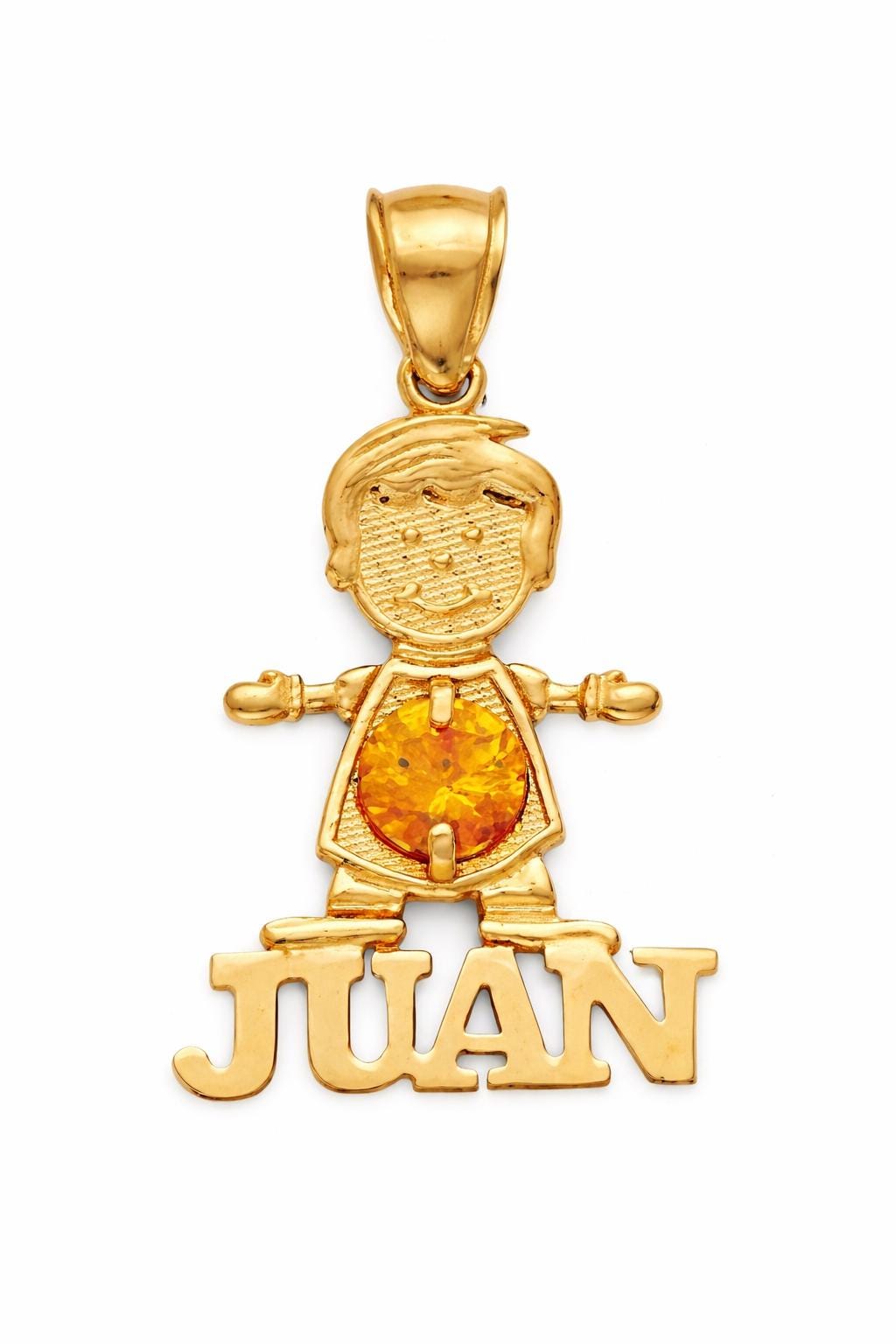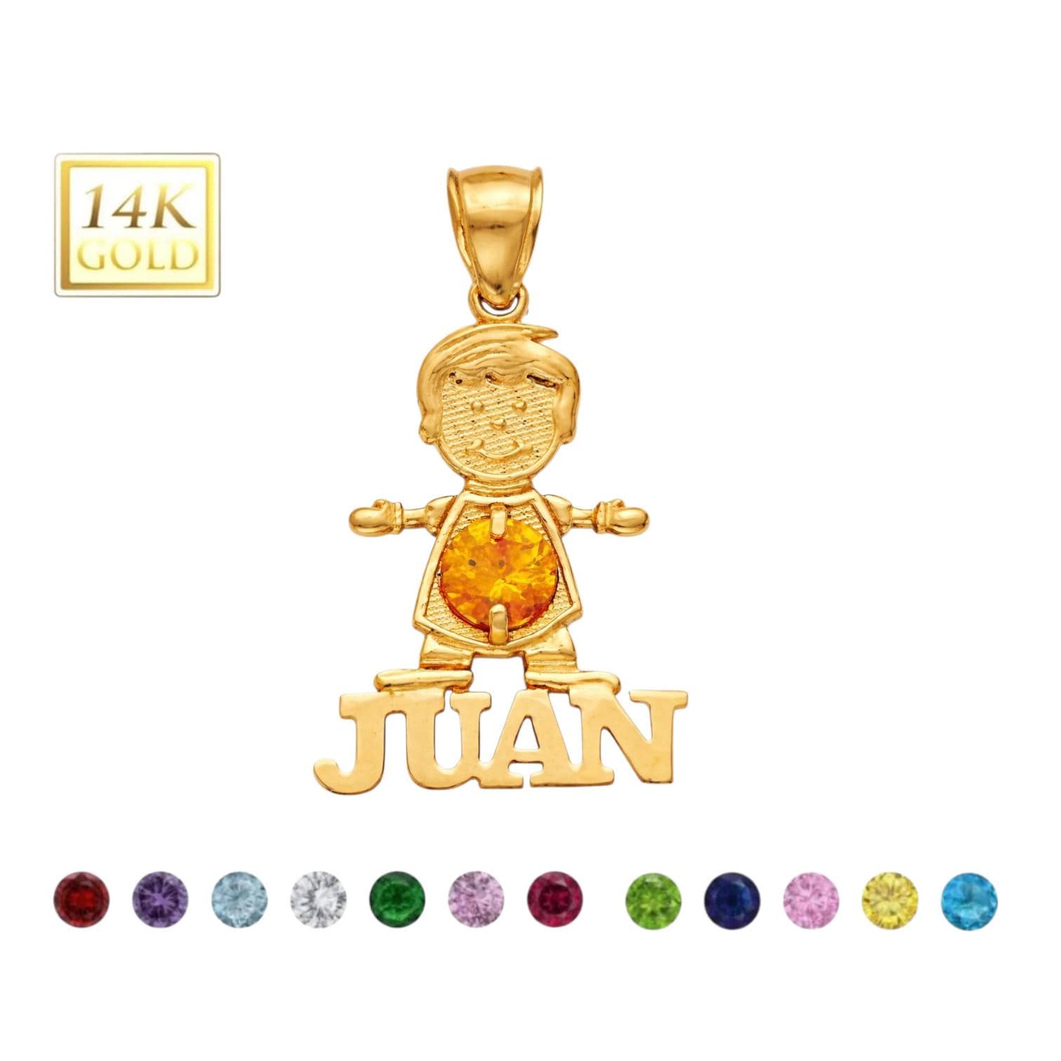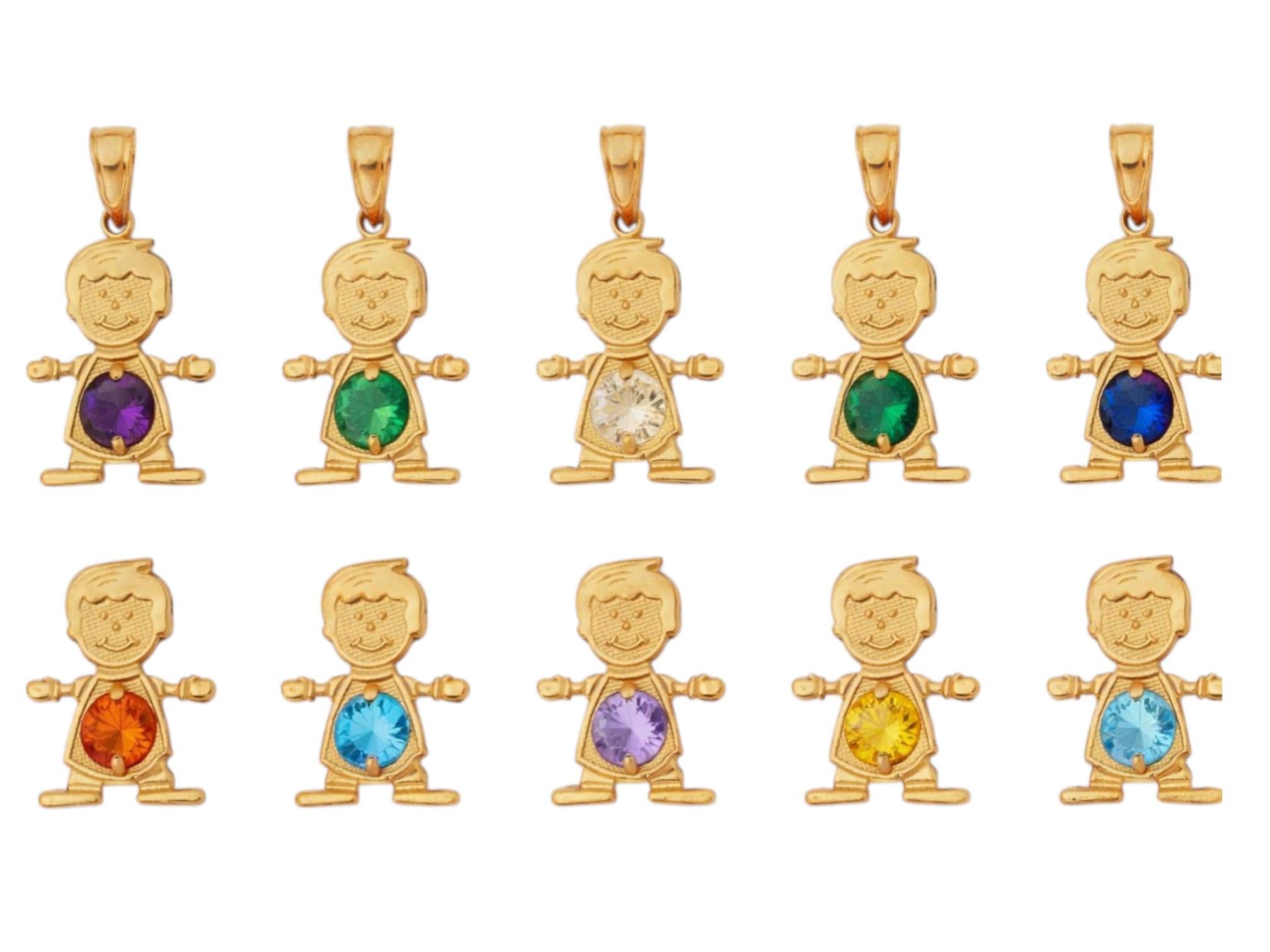 ❤Boy Pendant Name 14K Yellow gold with Birthstone Colors, Birthday gift, girl , charm, initial.